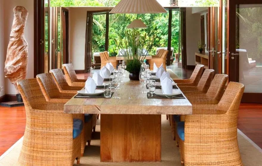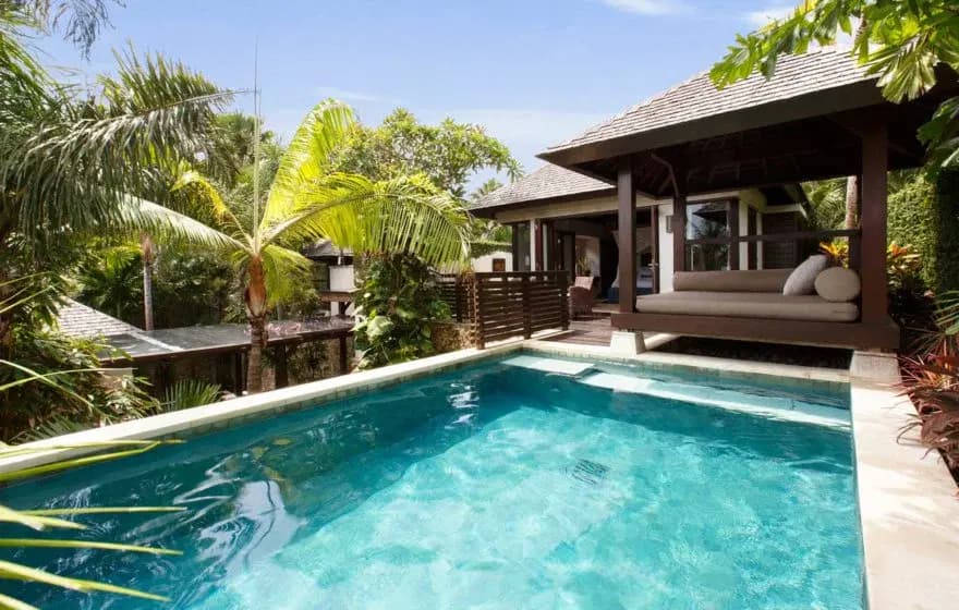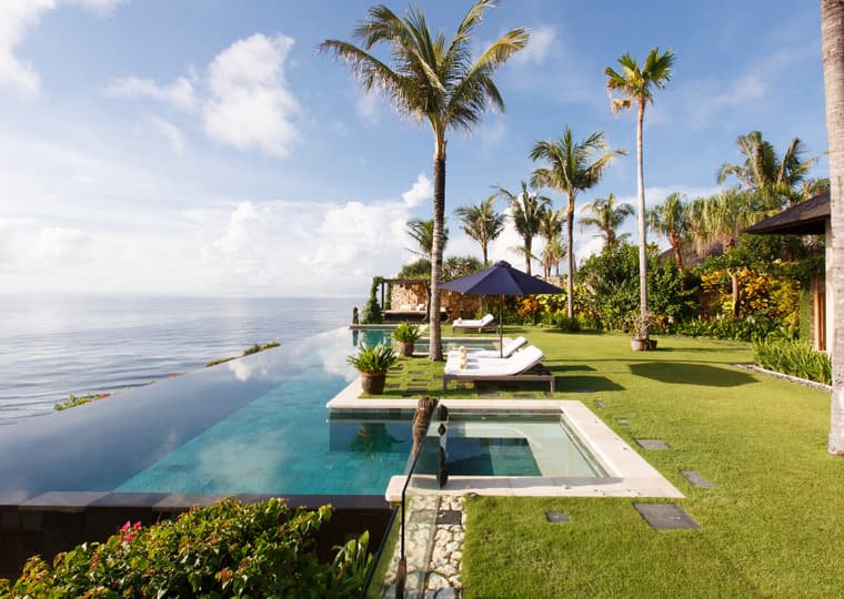 Villa Chintamani features a range of entertainment spaces on multiple levels. Along with lounge and dining options, the Villa offers a media room and the second level offers a deck with traditional Balinese daybeds capturing the sea breeze and 180 degree views. There are also two bales for relaxing